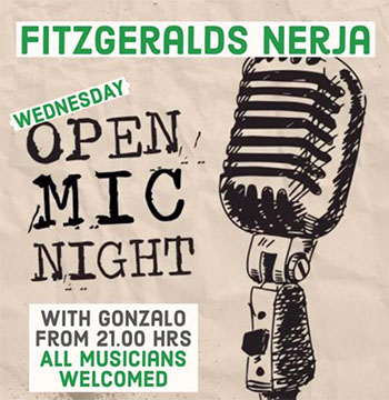 NERJA – De Spaanse de gitarist Gonzalo treedt woensdagavond 25 augustus op bij Fitzgerald’s Bar, op de hoek van park Verano Azul onder het pand van de SuperSol-supermarkt in Nerja.