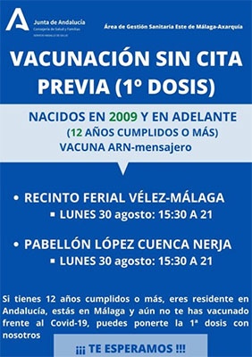 Om deel te nemen aan deze gratis vaccinatie-mogelijkheid is inschrijving bij één van de gezondheidscentra in het district Málaga-Axarquia noodzakelijk én moet de betreffende persoon 12 jaar of ouder zijn.