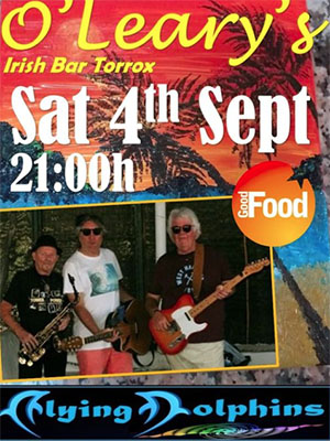 TORROX – De regionaal populaire band Flying Dolphins treedt zaterdag 4 september op in de kustplaats Torrox, op circa tien kilometer van Nerja gelegen. Dit gebeurt in O’Leary’s Irish Bar aan de Paseo Marítimo de Ferrara.
