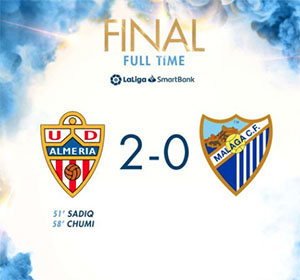 Málaga was gedurende de eerste helft de evenknie van Almería, hetgeen resulteerde in een 0-0 ruststand. Het numerieke overwicht in de tweede helft bleek aan de Andalusische formatie niet besteed. In het eigen Estadio de los Juegos Mediterráneos vocht de thuisclub zich naar de overwinning via treffers van Umar Sadiq (51ste minuut) en Chumi Brandariz (58ste minuut), waardoor Málaga CF het eerste verlies in het nieuwe voetbalseizoen incasseerde.