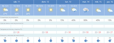 NERJA – Na een warm weekeinde, met nazomertemperaturen die tegen de dertig graden Celsius aanhikken, voorziet de Spaanse meteorologische dienst Aemet (Agencia Estatal de Meteorología) voor Nerja en omstreken een grote kans op regenval voor maandag 13 en dinsdag 14 september.