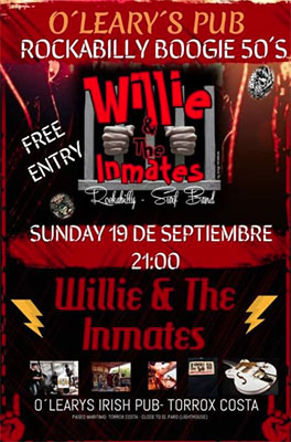 TORROX – De rockabilly-formatie Willie & The Inmates treedt zondagavond 19 september op bij O’Leary´s Irish Bar aan de Paseo Marítimo de Ferrara in de kustplaats Torrox, op circa tien kilometer van Nerja gelegen.