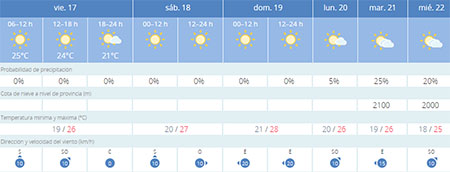 NERJA – Na een korte periode met wat regenval heeft de zon de regie weer in handen genomen boven Nerja en de Costa del Sol. Voor komend weekeinde verwachten de meteorologen van het weerstation Aemet (Agencia Estatal de Meteorología) véél zon en gemiddelde dagtemperaturen circa 28 graden Celsius rond Nerja.