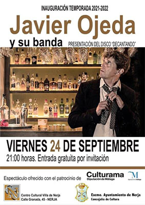 NERJA – Het nieuwe seizoen in het Centro Cultural Villa de Nerja wordt vrijdag 24 september geopend met een optreden van de zanger Javier Ojeda. Het optreden begint rond de klok van 21.00 uur, waarbij Ojeda wordt begeleid door zijn vaste band en nummers ten gehore worden gebracht van hun nieuwste cd ´Decantando´.
