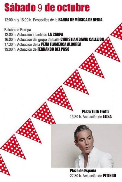 In de grote gemeentelijke feesttent op het Plaza d´España treedt zaterdagavond de Spaanse flamencozanger Pitingo op (vanaf circa 22.30 uur).
