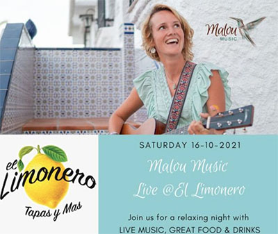 NERJA – De Nederlandse zangeres Malou treedt zaterdagvond 16 oktober op bij bar/restaurant El Limonero in Nerja. Deze bar is te vinden aan de Calle Los Huertos 1, bij de kruising met de Calle Almirante Ferrandiz in het centrum van Nerja.