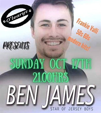 TORROX – De Britse zanger/gitarist Ben James treedt zondag 17 oktober op bij O’Leary’s Irish Bar in de kustplaats Torrox. Het optreden begint rond de klok van 21.00 uur.