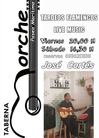 EL MORCHE – De Spaanse (flamenco)zanger en gitarist José Cortés speelt zowel vrijdagavond 15 oktober als zaterdagmiddag 16 oktober bij Taberna El Morche in de gelijknamige kustplaats aan de N-340 tussen Nerja en Málaga.