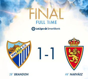 MALAGA – De voetbalwedstrijd tussen Málaga CF en Real Zaragoza, in de tiende speelronde voor de Spaanse Segunda División, is zaterdagavond 16 oktober uitgedraaid op een puntendeling. Na negentig minuten stond in het La Rosaleda-stadion van Málaga een 1-1 eindstand op het scorebord.
