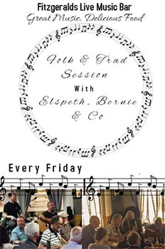 Opgetreden wordt daarbij door de groep Elspeth & Co. vanaf de klok van 17.00 uur tot circa 21.00 uur. Deze Folk & Trad Session wordt in de wintermaanden wekelijks op vrijdag herhaald.