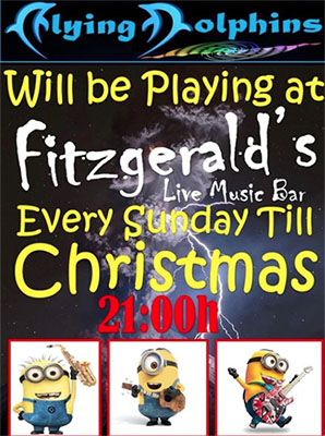 NERJA – De regionaal vermaarde band The Flying Dolphins treedt tot de Kerst iedere zondagavond op bij Fitzgerald’s Bar, op de hoek van park Verano Azul (Calle Antonio Ferrandis Chanquete) onder het pand van de Super Sol-supermarkt in Nerja.