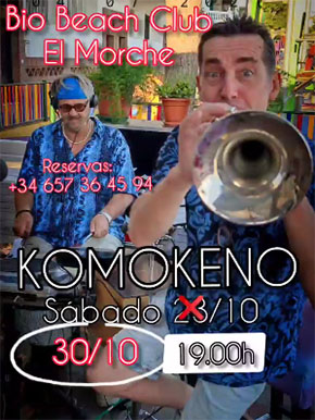 EL MORCHE – De formatie Komokeno treedt zaterdagavond 30 oktober op in de kustplaats El Morche. Dit gebeurt bij de Bio Beach Club aan de Paseo Marítimo 5 in El Morche.