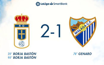 OVIEDO – In de dertiende speelronde voor de Spaanse Segunda División leed voetbalclub Málaga CF zondagmiddag 31 oktober een zure nederlaag bij en tegen Real Oviedo. De thuisclub besliste het duel in de slotminuut, waarin Borja González de beslissende tweede treffer voor Oviedo binnen werkte: 2-1.