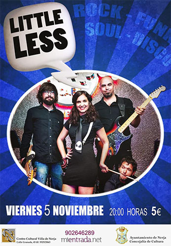 NERJA – De in de regio rond Nerja veelvuldig optredende rock- en funkformatie Little Less treedt vrijdagavond 5 november op in het Centro Cultural Villa de Nerja.