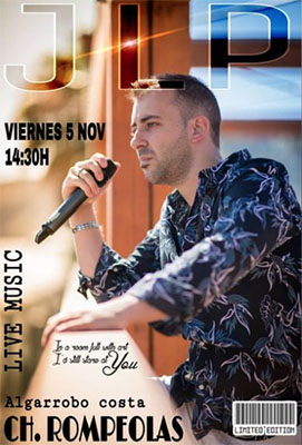 ALGARROBO – De Spaanse zanger Jean Luis Pascual Sanchez treedt vrijdagmiddag 5 november op bij chiringuito Rompeolas in de kustplaats Algarrobo. Het optreden begint rond de klok van 14.30 uur.