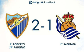MALAGA – In het voetbalstadion La Rosaleda heeft Málaga CF donderdagavond 4 november een zwaarbevochten 2-1 overwinning geboekt op het tweede team van Real Sociedad voor de competitie in de Spaanse Segunda División.