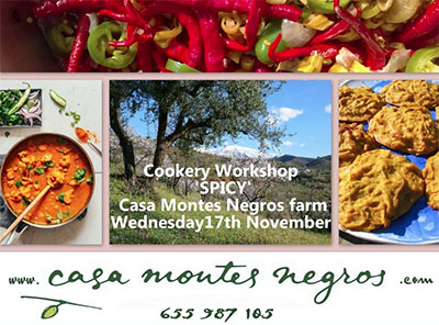 TRAPICHE – Op de biologische boerderij ‘Casa Montes Negros’ bij het dorpje Trapiche kan woensdag 17 november worden deelgenomen aan een zogeheten ´Spicy Cookery Workshop´. Het landgoed van Casa Montes Negro ligt bij het plaatsje Trapiche, even boven Vélez-Málaga met adembenemende vergezichten over de Sierra Tejeda.
