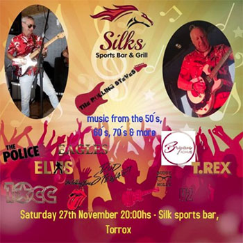 TORROX – Bij Silks Sports Bar & Grill in Torrox speelt zaterdagavond 27 november de formatie The Rolling Steve´s. Het optreden staat gepland vanaf circa 20.00 uur.