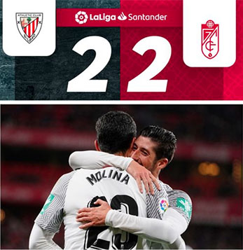 BILBAO – Voetbalclub Granada CF heeft vrijdagavond 26 november een punt overgehouden aan de verre reis naar Baskenland. In het stadion San Mamés Barria van het Athletic Club Bilbao eindigde de wedstrijd uit de vijftiende speelronde van de Primera División in 2-2.