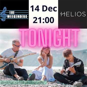 ALMUNECAR – In hotel Helios in de kustplaats Almuñécar staat dinsdagavond 14 december een optreden geprogrammeerd van de band The Weekenders. Het optreden begint rond 21.00 uur.
