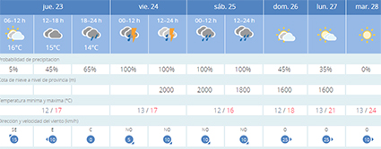 Ook de dagen daaromheen bestaat er een kans op neerslag. Qua temperaturen valt het wel mee aan de Costa del Sol. De komende dagen ligt de gemiddelde dagtemperatuur iets onder de twintig graden Celsius, na het weekeinde verwachten de meteorologen gemiddelden van 21 graden op maandag 27 december en zelfs 24 graden op dinsdag 28 december.