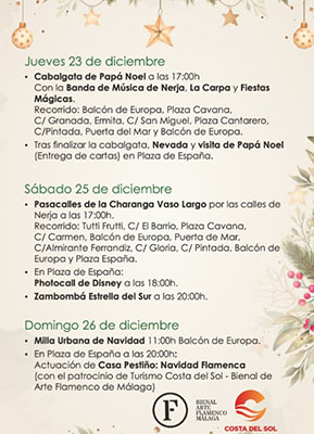 Een en ander is wel afhankelijk van het weer: bij regenval heeft de gemeente Nerja de neiging om dergelijke activiteiten op het allerlaatste moment af te gelasten.