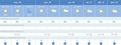 NERJA – Volgens de huidige weersverwachtingen staat Nerja en omstreken een droge en relatief warme jaarwisseling te wachten. De meteorologen van het weerstation Aemet (Agencia Estatal de Meteorología) voorspellen op zowel oud- als nieuwjaarsdag gemiddelde dagtemperaturen van circa 20 graden Celsius terwijl het in de nieuwjaarsnacht niet kouder wordt dan 15 graden Celsius.