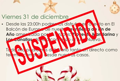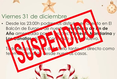 NERJA – In navolging van het buurdorp Frigiliana heeft nu ook de gemeente Nerja een streep gezet door de geplande festiviteiten rond de jaarwisseling. Daarmee is ook, het jaarlijks spectaculair en massaal bezochte, oudjaarsfeest op het Balcón de Europa geannuleerd.