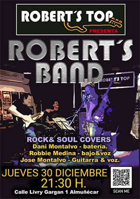 ALMUNECAR – Bij bar/restaurant Robert’s Top in Almuñécar staat donderdagavond 30 december een optreden geprogrammeerd van Robert´s Band. Het optreden begint rond de klok van 21.30 uur.
