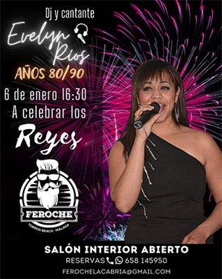 TORROX – De zangeres Evelyn Ríos treedt donderdag 6 januari op bij restaurant Feroche in de kustplaats Torrox. Restaurant Feroche is te vinden aan de Paséo Maritímo in Torrox-Costa. Het optreden begint rond de klok van 16.30 uur.