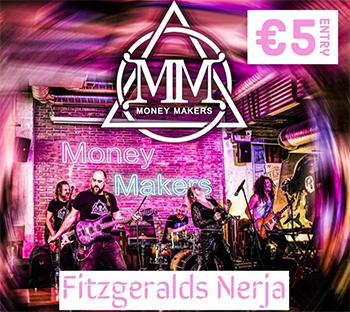 NERJA – De band Money Makers treedt zaterdagavond 22 januari op bij bar Fitzgerald’s in Nerja. De livemuziek begint rond 21.00 uur, de entreeprijs is vijf euro per persoon.