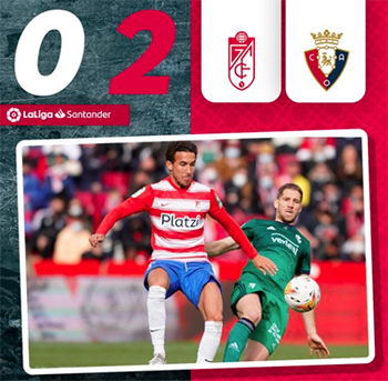 GRANADA – In het eigen stadion Nuevo Los Cármenes moest de Andalusische voetbalclub Granada CF zondagmiddag 23 januari zijn meerdere erkennen in CA Osasuna. De bezoekers wonnen het duel in de 22ste speelronde voor de Spaanse Primera División met 0-2.