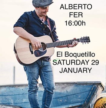 FRIGILIANA – Bij restaurant El Boquetillo aan de Calle San Sebastián 8 in Frigiliana treedt zaterdagmiddag 29 januari de Spaanse zanger/gitarist Alberto Fer op.