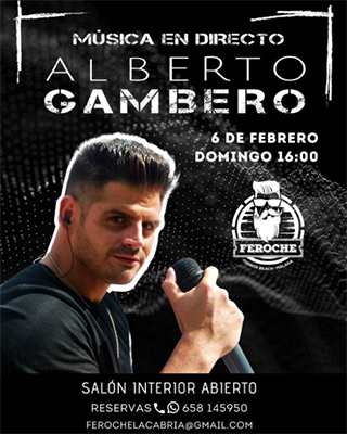 TORROX – De zanger Alberto Gambero treedt zondag 6 februari op bij restaurant Feroche in de kustplaats Torrox. Restaurant Feroche is te vinden aan de Paséo Maritímo in Torrox-Costa. Het optreden begint rond de klok van 16.00 uur.