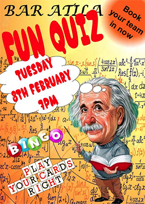 De quiz begint dinsdagavond rond 19.00 uur, bar Atila is te vinden aan de Calle Buena Vista 9 in Puente Don Manuel. Vooraf reserveren aangeraden. Dit kan telefonisch via het nummer (+34) 630 393 290 of via e-mail: atilabarpuente@gmail.com.