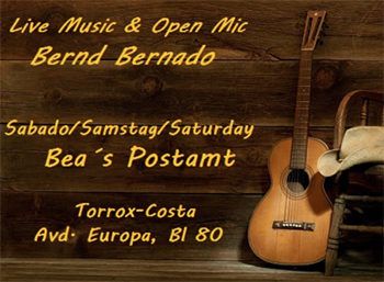Gitarist en zanger Bernd Bernado bij Bea’s Postamt TORROX – De gitarist/zanger Bernd Bernado treedt zaterdagavond 12 februari op bij de Music & Cocktail Bar Bea’s Postamt in de kustplaats Torrox. De bar is te vinden aan de Avenida Europa (Bloque 80), het optreden begint rond de klok van 20.00 uur. Delen: Klik om te delen op X (Opent in een nieuw venster) X Klik om te delen op Facebook (Opent in een nieuw venster) Facebook Vind-ik-leuk Aan het laden...