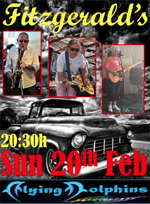 NERJA – De regionaal vermaarde band The Flying Dolphins speelt zondagavond 20 februari weer bij Fitzgerald’s Bar in Nerja.