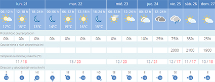 NERJA – Na een relatief kil weekeinde en wat neerslag op zondag lopen de gemiddelde dagtemperaturen met ingang van maandag 21 februari weer op voor Nerja en directe omgeving. Waar het kwik maandag nog blijft steken op een gemiddelde waarde van circa 18 graden Celsius wordt de dagen daarna de grens van 20 graden gehaald, zo voorspellen de meteorologen van het weerstation Aemet (Agencia Estatal de Meteorología).