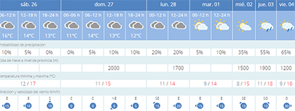 Wat meer serieuze neerslag wordt aan het einde van de komende week verwacht volgens de deskundigen van Aemet. De wind is de komende dagen zwak tot matig, op dinsdag 1 maart en woensdag 2 maart lijkt in de huidige vooruitzichten de zon weer af en toe door te breken.
