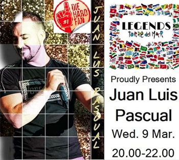 TORRE DEL MAR – De Spaanse zanger Juan Luis Pascual Sanchez treedt woensdagavond 9 maart op bij Legends Bar in de kustplaats Torre del Mar.