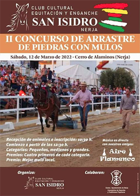 NERJA – Op het terrein Cerro de Aluminos, vlak achter de urbanisatie La Noria, wordt zaterdag 12 maart in Nerja de tweede uitgave van het paardenevenement Concurso de Arrastre de Piedras con Mulas gehouden.