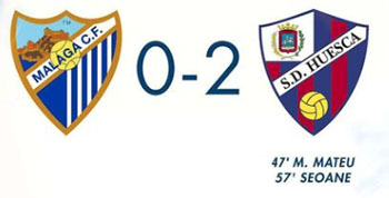 In het eigen stadion La Rosaleda hield Málaga één helft gelijke tred met de bezoekers. Vlak na de rust sloeg Huesca echter toe met twee doelpunten. De openingstreffer kwam op naam van Marc Mateu, die twee minuten na de hervatting de 0-1 scoorde. Tien minuten later was het door Jaime Valenciano opnieuw raak: 0-2. In de verder gelijk opgaande wedstrijd zag Málaga geen kans meer om de opgelopen schade te repareren.