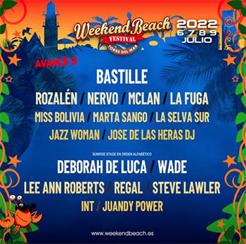 De organisatie presenteerde deze week een lange lijst met optredende bands en artiesten. Meer informatie over het muziekfestival en de recente ontwikkelingen is te vinden op de website http://www.weekendbeach.es .