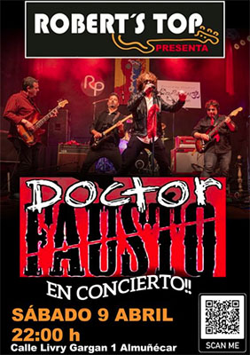 ALMUNECAR – In bar/restaurant Robert’s Top in Almuñécar staat zaterdagvond 9 april een optreden geprogrammeerd van de band Doctor Fausto. Het optreden begint rond 22.00 uur en duurt tot circa middernacht.