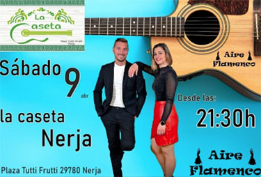 Aire Flamenco bij La Caseta op Plaza Tutti Frutti NERJA – Op het Plaza Tutti Frutti in Nerja treedt zaterdag 9 april de formatie Aire Flamenco op. Dit gebeurt bij de vorige maand geopende bar La Caseta. Het optreden begint rond de klok van 21.30 uur. Delen: Klik om te delen op X (Opent in een nieuw venster) X Klik om te delen op Facebook (Opent in een nieuw venster) Facebook Vind-ik-leuk Aan het laden...
