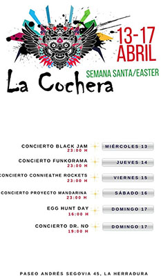 La Cochera is gevestigd aan de Paseo Andrès Segovia, het optreden begint rond 23.00 uur. De uit Nerja afkomstige en in de Axarquía-regio mateloos populaire formatie brengt voornamelijk ska- en reggae-muziek ten gehore.