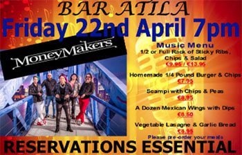 PUENTE DON MANUEL – De formatie MoneyMakers treedt vrijdagavond 22 april op bij bar Atila in het plaatsje Puente Don Manuel, naast het meer van Viñuela (iets boven Vélez-Málaga).