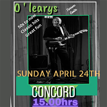 TORROX – De Ierse gitarist Connie treedt zondagmiddag 24 april met zijn band Concord op in de kustplaats Torrox, op circa tien kilometer van Nerja gelegen. Dit gebeurt in O’Leary’s Irish Bar aan de Paseo Marítimo de Ferrara.