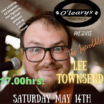 TORROX – De Britse zanger/gitarist Lee Townsend treedt zaterdag 14 mei op bij O’Leary’s Bar aan de Paseo Marítimo de Ferrara in Torrox-Costa. Het optreden begint om circa 17.00 uur.