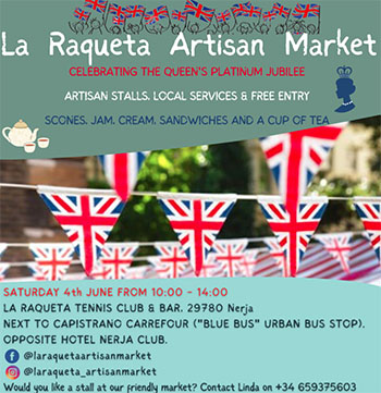 NERJA – Op de terreinen van de padel- en tennisclub La Raqueta in Nerja staat zaterdag 4 juni een ambachtsmarkt gepland. Het gaat hierbij om een maandelijks terugkerende markt, telkens op de eerste zaterdag van de maand.